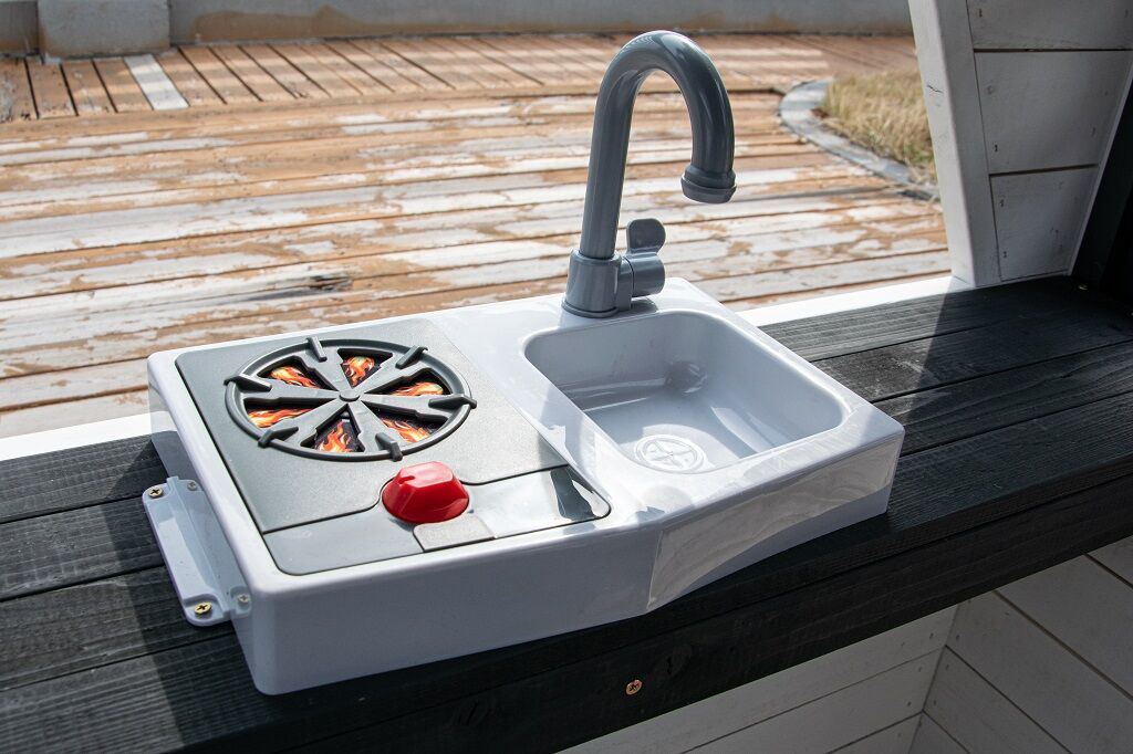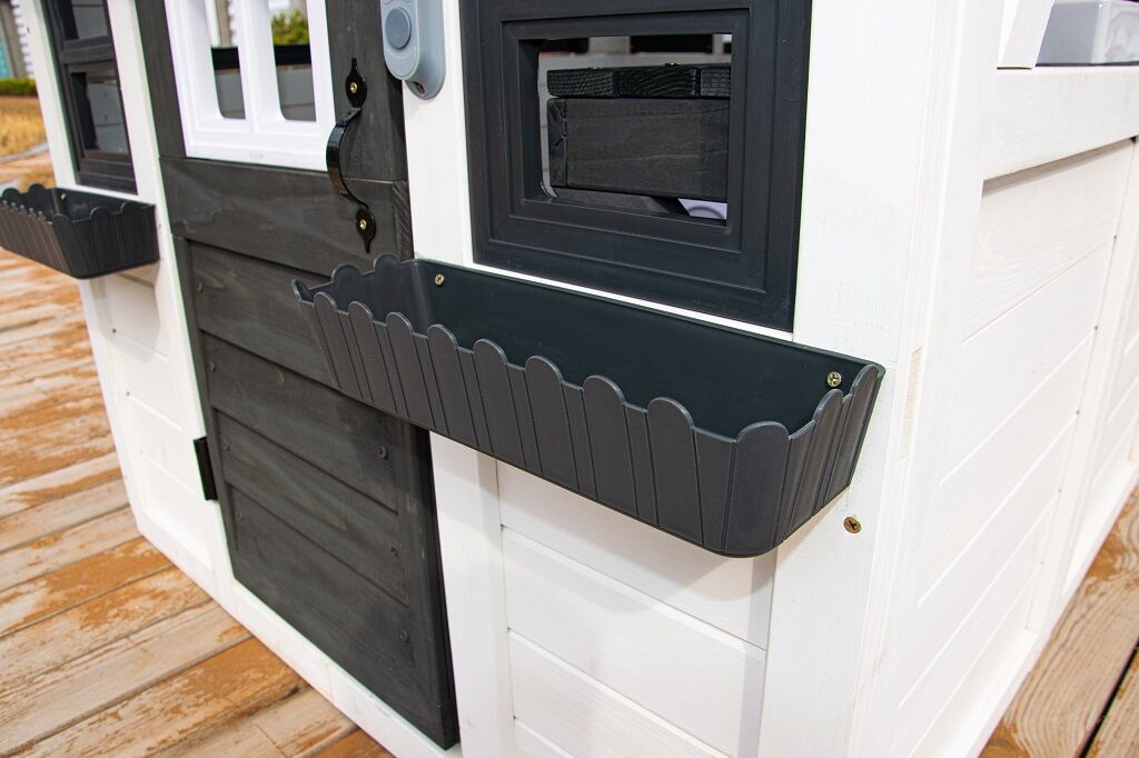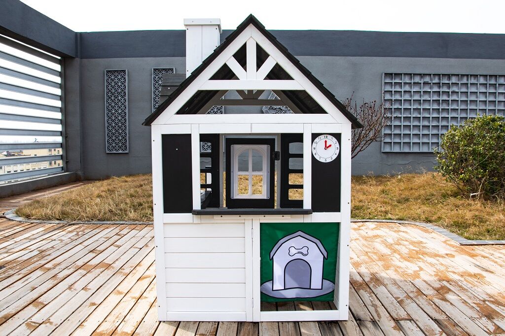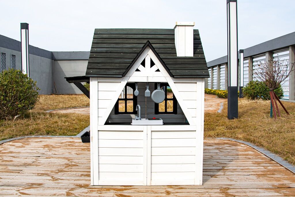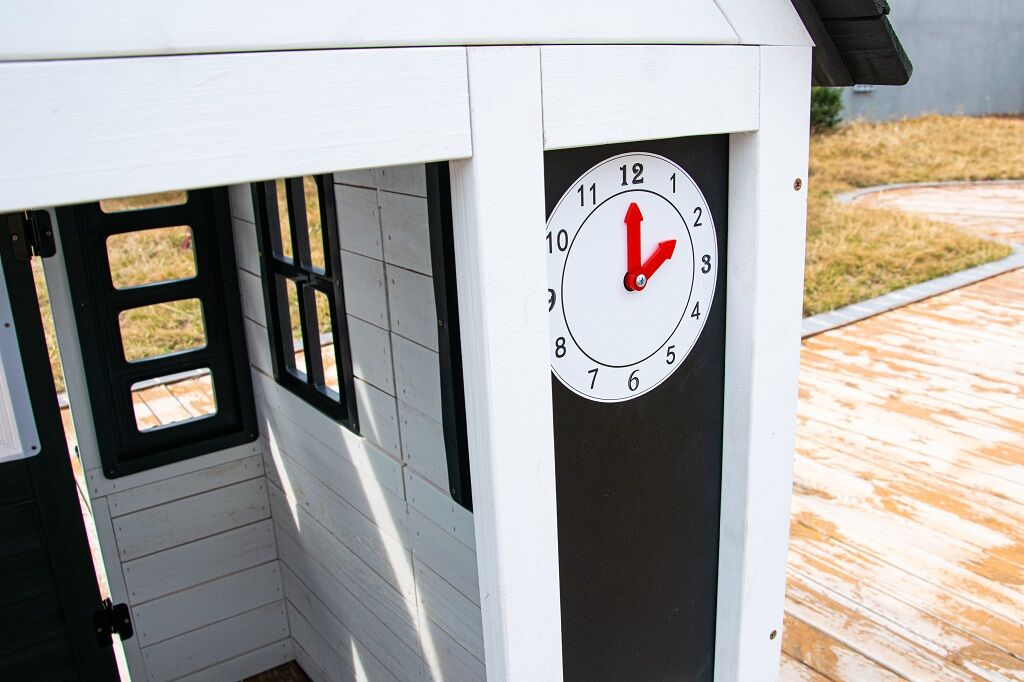 Kto by netúžil po svojom vlastnom bývaní! Doprajte svojim deťom pokojný kút, kde môžu odpočívať, mať súkromie a nerušene sa hrať. V tomto rozkošnom domčeku sa budú cítiť ako v rozprávke. Veľké bočné okno ponúka krásny výhľad do okolia a umožní premeniť domček na predajný stánok alebo obchod. V útulnej kuchynke, v ktorej nechýba varná doska s otočným červeným gombíkom, drez a základný riad, predvedú malí kuchári a kuchárky svoje kulinárske zručnosti a pripravia pre kamarátov alebo rodičov chutné menu. Ďalšími štýlovými doplnkami sú hodiny, hrantíky po stranách vstupných dverí, v ktorých sa budú krásne vynímať kvety, praktický vstup pre psíka, ktorý je prekrytý látkovým závesom s motívom psej búdy. Domček je vyrobený z dreva a opatrený náterom v prírodných farbách. Bude skvelým doplnkom a ozdobou každej záhrady alebo menšieho vonkajšieho priestoru. Tak na čo ešte čakáte? Zazvoňte na zvonček a poďte ďalej!