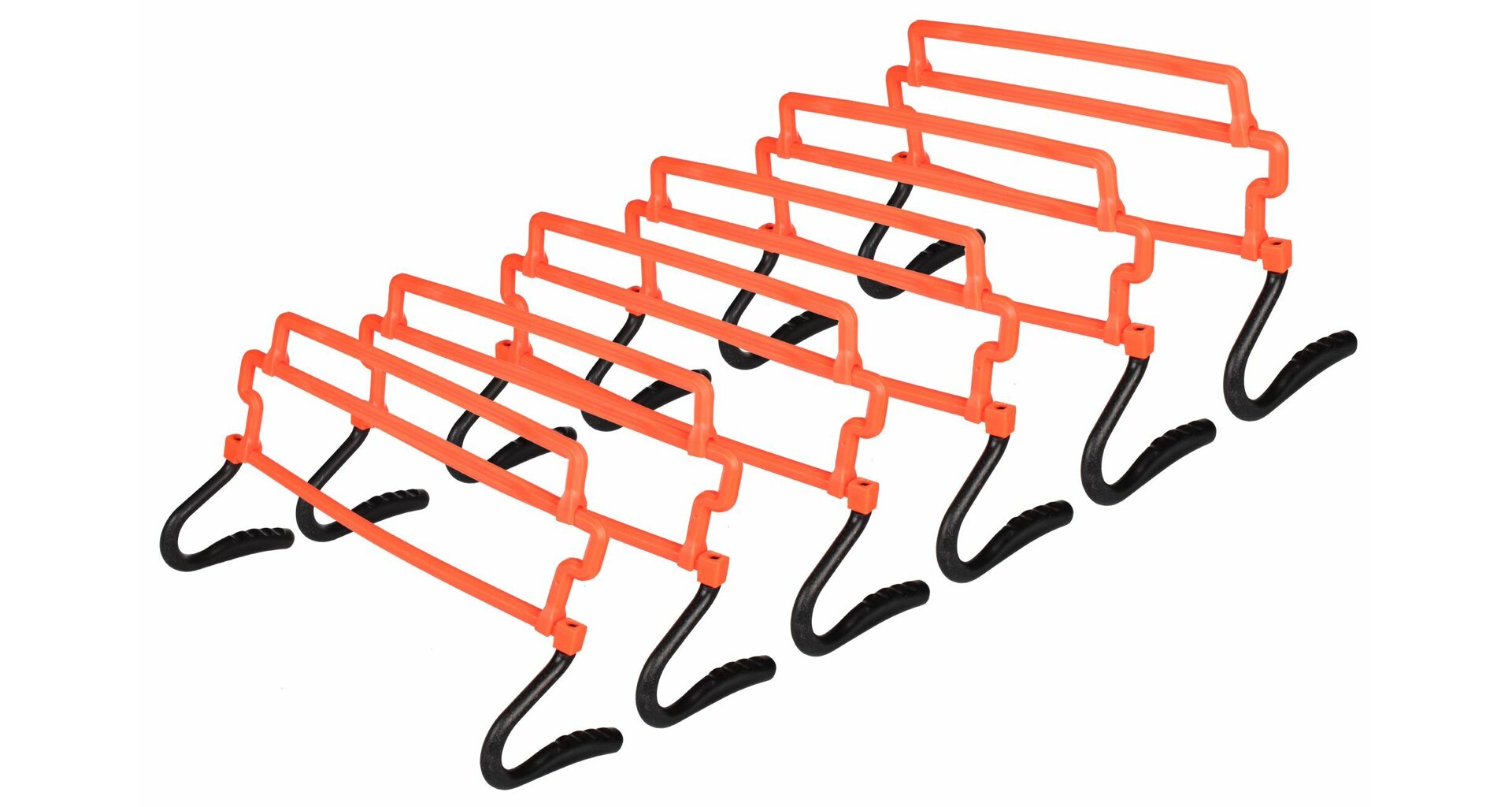 Sada šiestich nastaviteľných prekážok Hurdle v praktickom obale pre jednoduché uskladnenie a prenášanie. Nastaviteľná prekážka Merco Hurdle je univerzálna tréningová pomôcka, ktorá nájde svoje uplatnenie na kondičné cvičenie takmer vo všetkých športových odvetviach. Skladacia prekážka je vyrobená z polyetylénu s vysokou hustotou. Pre väčšiu variabilitu cvičenia možno jej výšku nastaviť na tri rôzne úrovne - 14 cm, 24 cm alebo 29 cm. Šírka prekážky je 44 cm a jej hmotnosť približne 380 g. Je vhodná na použitie v telocvičniach aj vonku počas letnej prípravy