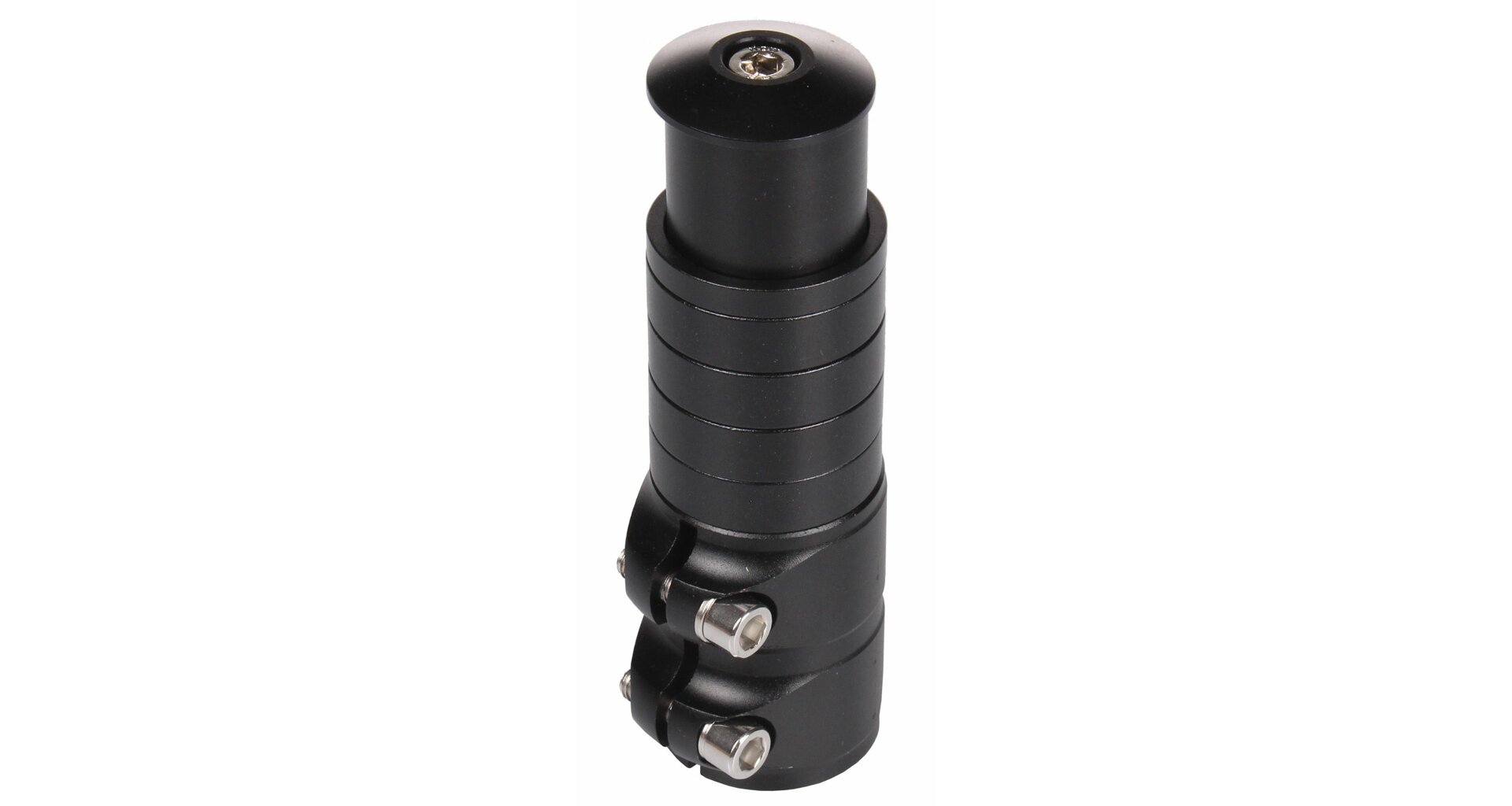 Ak potrebujete u svojho bicykla zvýšiť riadidlá, jednoduchým a praktickým riešením je nástavec na vidlicu Merco Stem. Nástavec je vyrobený z odolnej zliatiny hliníka, jeho hmotnosť je 185 g a celková výška 11,5 cm. Spodný vnútorný priemer nástavca je 28,6 mm. Využitie nájde pre cestné aj horské bicykle. Po nainštalovaní nástavca (viz obrázok) si môžte ešte výšku riadidiel dodatočne upraviť vďaka odnímateľným prstencom - 4 x 9 mm, 1 x 5 mm.