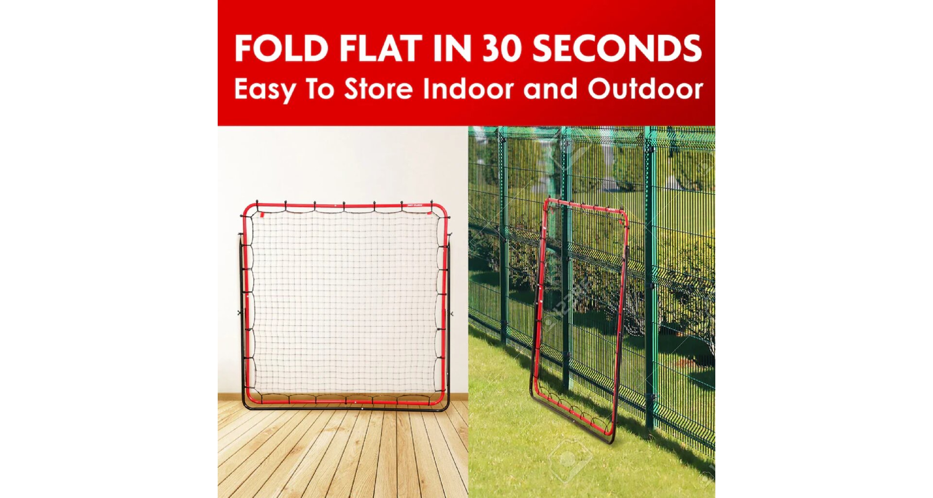 Futbalová odrážacia sieť Soccer Rebounder 5x5FT od NET PLAYZ je navrhnutá tak, aby posunula váš tréning na novú úroveň a umožnila vám ľahko precvičovať akýkoľvek typ prihrávok a spracovania lopty. Poskytuje širšiu variabilitu tréningu vďaka tomu, že ju je možné nastaviť do rôznych uhlov. Vďaka ľahkej skladacej oceľovej konštrukcii s PE sieťou rebounder jednoducho uskladníte počas jednotlivých tréningov. Hodí sa ako pre individuálne tréningy, tak tréningy v tíme. Súčasťou sú aj kolíky na upevnenie do zeme pre väčšiu stabilitu. Zlepšujte svoje futbalové zručnosti a posuňte sa na ďalšiu úroveň s tréningovou pomôckou NET PLAYZ Soccer Rebounder!