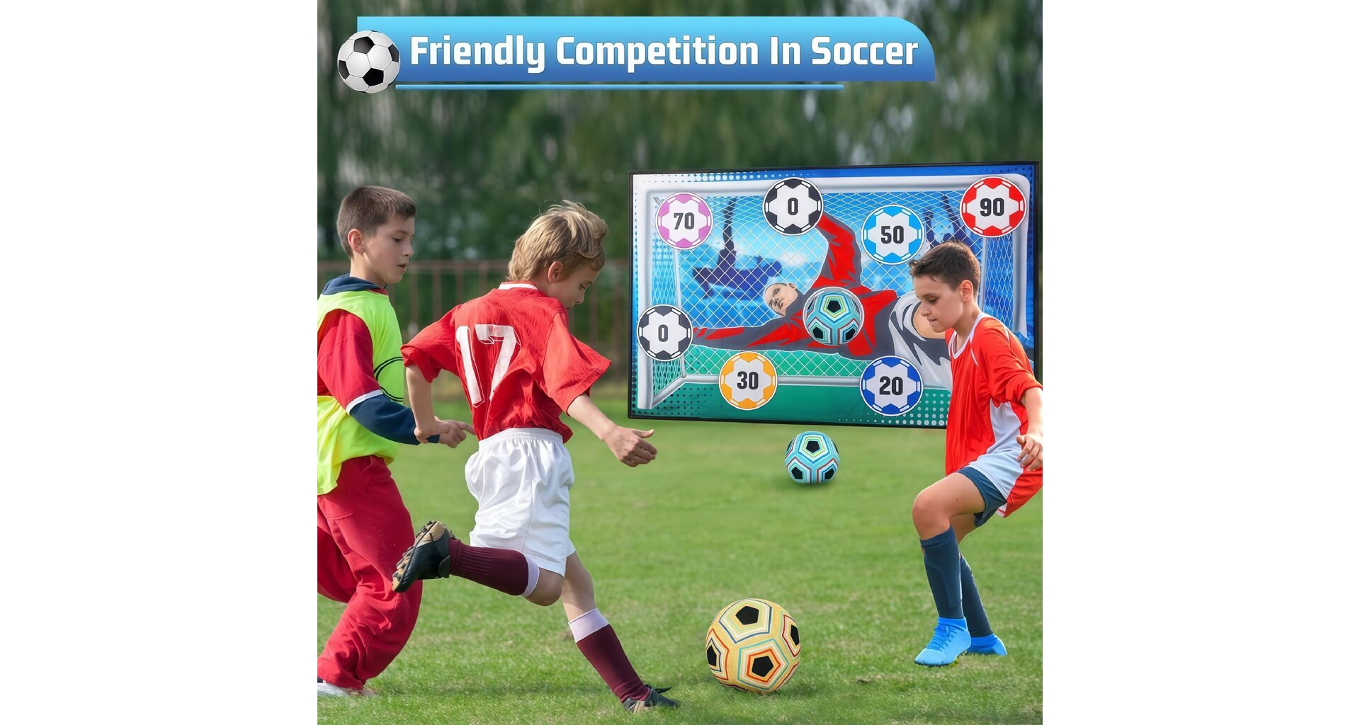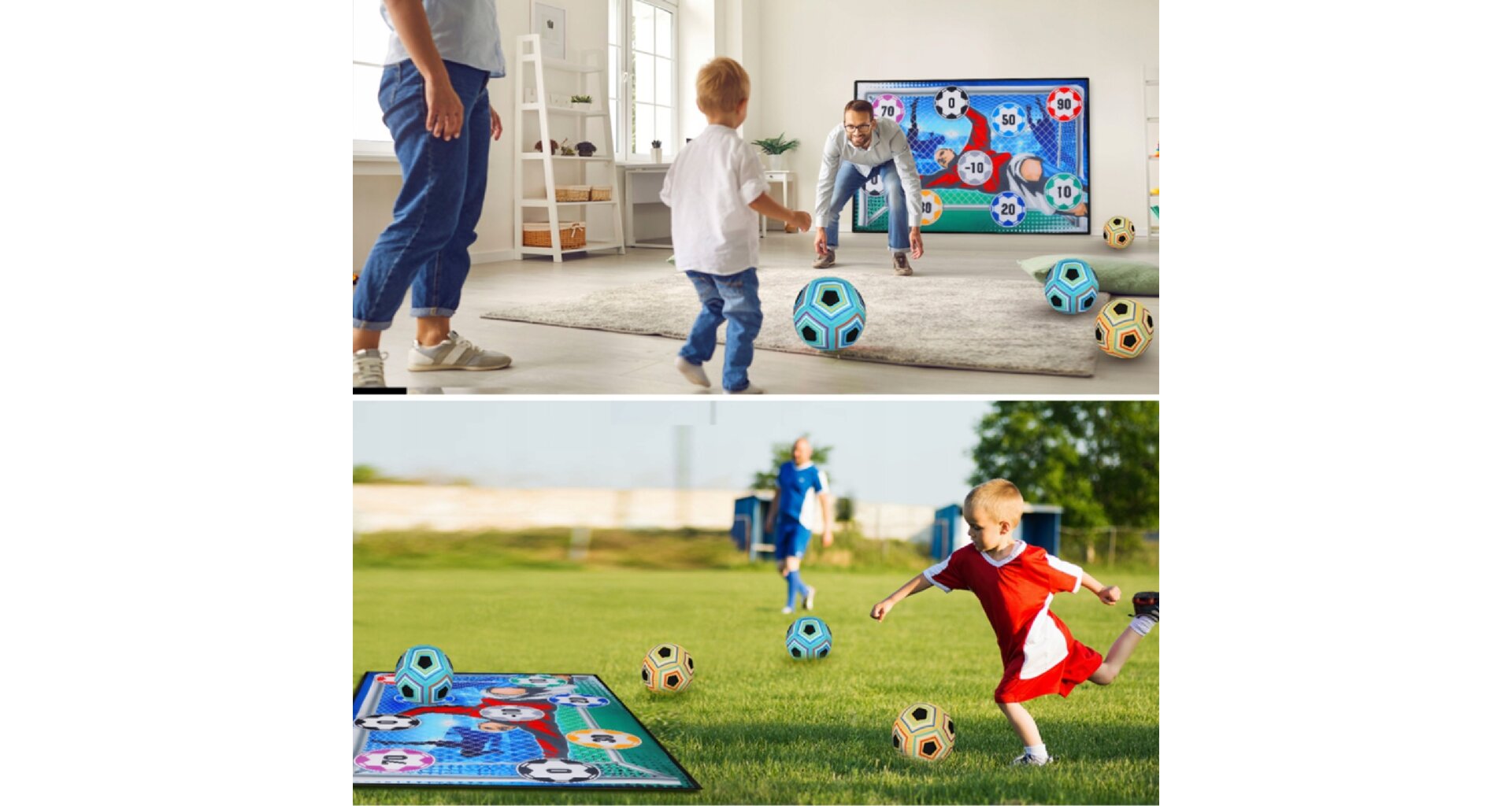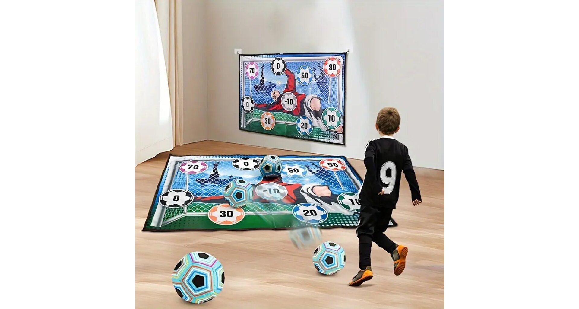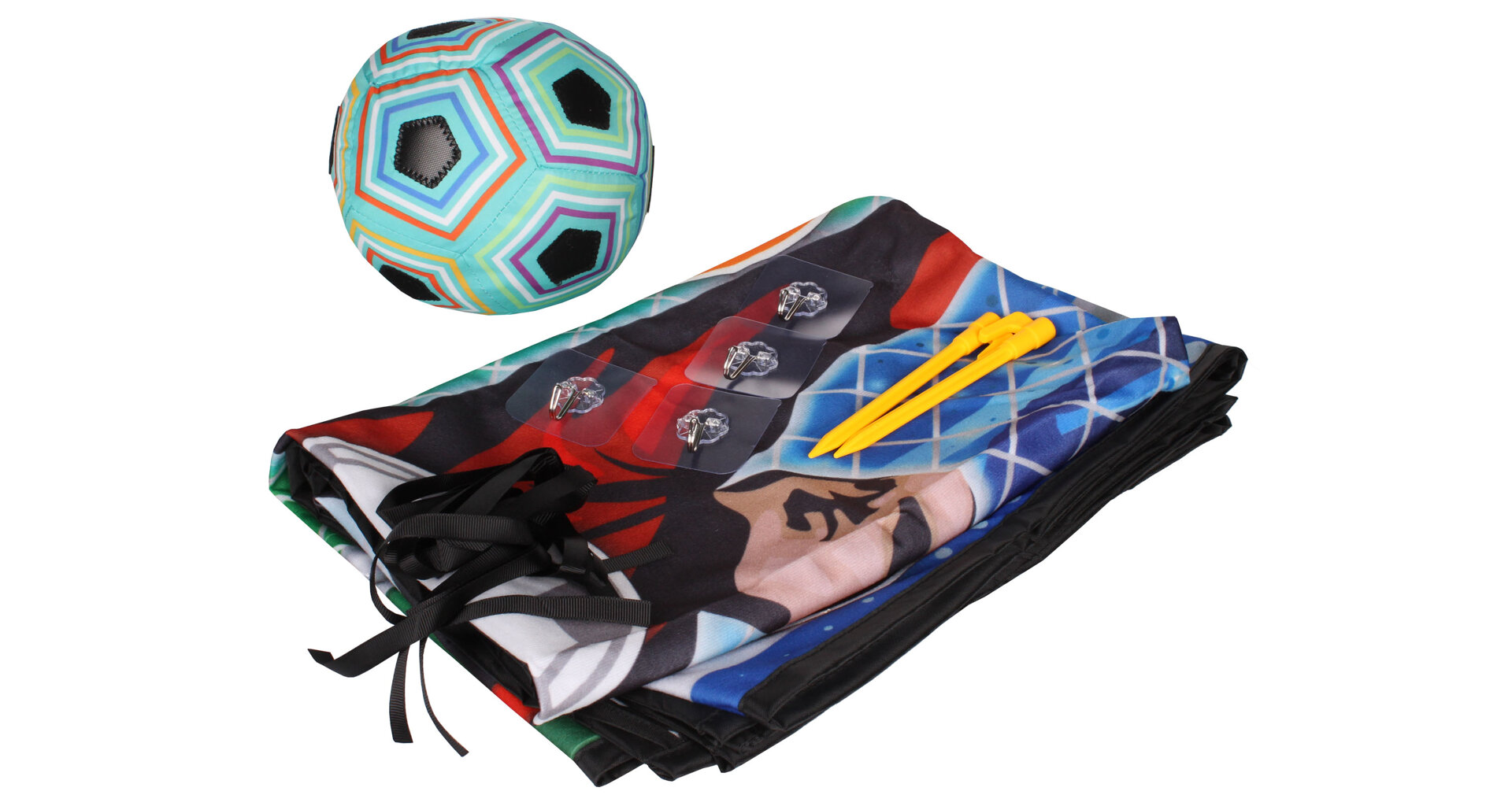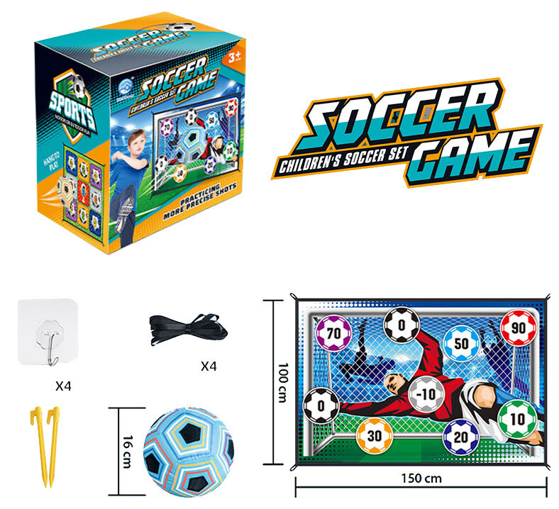 Pokiaľ hľadáte zábavnú hru pre svoje dieťa a zároveň u neho už čo najskôr rozvíjať pohybové schopnosti a chuť k športu, je futbalový trenažér Merco Soccer Game Indoor vhodný práve pre vás! Táto futbalová sada obsahuje textilný terč s rozmermi 150 x 100 cm, mäkkú loptičku vyplnenú bavlnou, so suchými zipsami na povrchu a priemerom 16 cm, dva plastové štipce do zeme, štyri popruhy a štyri háčiky. Futbalový trenažér môžete používať vo vnútri aj vonku. Terč môžete len položiť na zem, ale vďaka očkám v rohoch ho môžete aj pripevniť doma na stenu či zavesiť vonku do bránky. Výrobok nie je vhodný pre deti mladšie ako 3 roky!